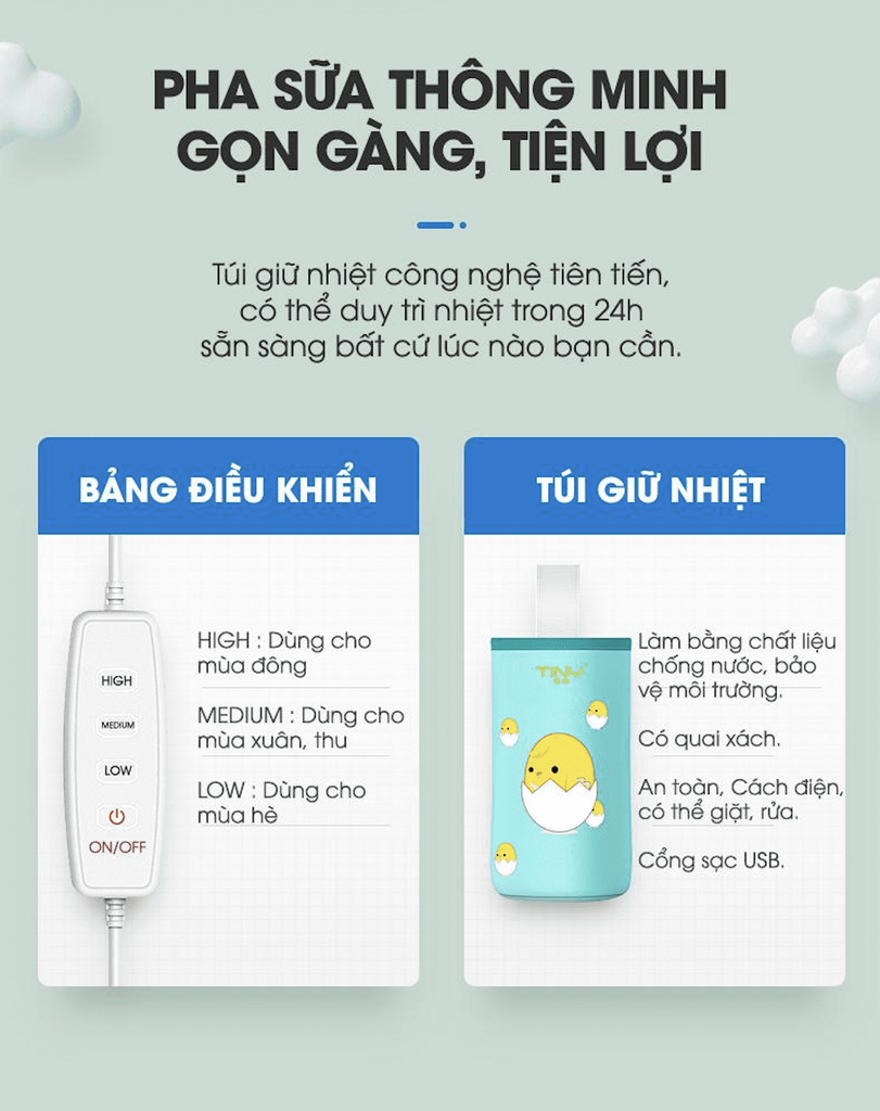 ✅ Nước luôn được giữ ấm ở nhiệt độ ~40°C có thể pha sữa ngay lập tức.