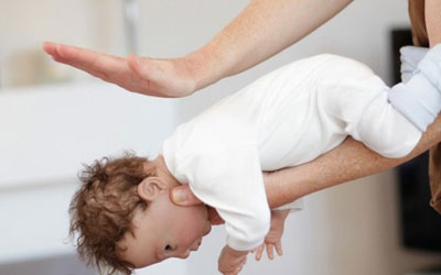 + Bế trẻ nầm sấp trên tay, dùng tay vỗ mạnh liên tiếp 5 cái vào lưng để sữa trào ra đường miệng