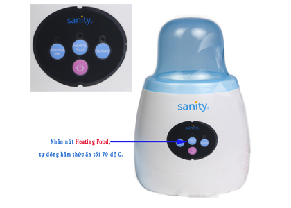 - Hâm thức ăn cho bé bằng cách nhấn nút Heating food, đèn bật sáng và nhấp nháy.