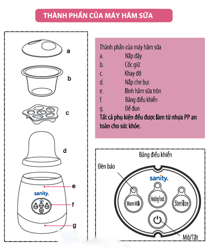 Máy hâm sữa đa chức năng Sanity tích hợp 3 tính năng riêng biệt của từng dòng máy hâm sữa, tiệt trùng bình sữa và hâm nóng thức ăn giúp các mẹ bỉm sữa và những người chăm con nhỏ yên tâm với chất lượng và độ nóng ấm hợp lí của sữa cho bé.